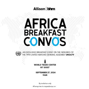 As world leaders gather in New York for the 79th United Nations General Assembly (UNGA79), a significant side event is poised to shine a spotlight on Africa’s economic potential and development opportunities. The “Africa Breakfast Convos,” co-hosted by global communications consultancy Allison and Africa’s leading PR firm BHM, will bring together influential voices from across the continent and beyond on Friday September 27, 2024, at the World Trade Center in New York.