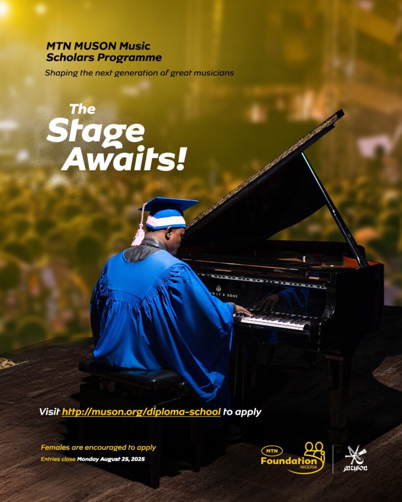 The MTN Foundation, in partnership with the Musical Society of Nigeria (MUSON), has announced the commencement of applications for the 2025/2026 MTN MUSON Music Scholars Programme. This initiative reaffirms MTN Foundation’s commitment to nurturing young Nigerian musical talent and contributing to the growth of the arts and culture sector in Nigeria. The MTN MUSON Music […]