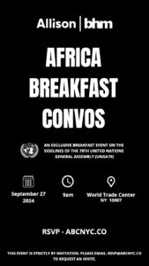The “Africa Breakfast Convos” will take place on September 27, 2024, at the World Trade Center. This high-powered, invite-only breakfast gathering will bring together influential leaders from across Africa and beyond to discuss the continent’s immense potential for economic growth and sustainable development.