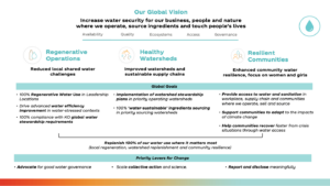While we’ve made fantastic progress and helped set the corporate benchmark for water stewardship, the risks and shared challenges we face on water resources – for our business, our supply chain and our communities – have outpaced our efforts. With our previous strategy, we set goals and invited others to follow our lead. Many did, and we collectively reshaped what water stewardship means.