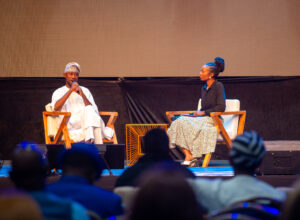 L-R: Ayeni Adekunle, founder of BlackHouse Media and convener of NECLive (left); and Lamide Akintobi, CNN Africa Journalist during a panel session titled ”The Power to Create” at the 2025 Nigerian Entertainment Conference (NECLive), in Lagos, Nigeria