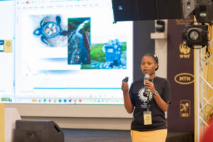 Participant displaying her project at the PachiPanda Challenge is an innovation competition for