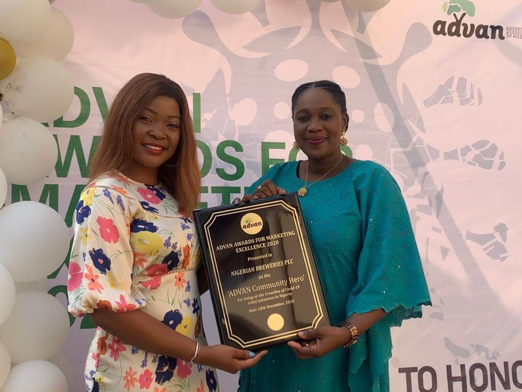 Nigerian Breweries has received a special award at the Advertising Association of Nigeria Awards for Excellence 2020, popularly known as the ADVAN Awards. The foremost brewing company received the coveted ‘ADVAN Community Hero’ award, following its stellar run of COVID-19 relief efforts across the country.