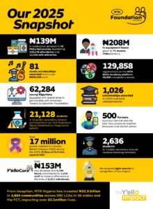 Reflecting on these milestones, the Executive Director of the MTN Foundation, Odunayo Sanya, noted: “In 2026, our boots are strapped, and we make a pledge to do hard and difficult things in order to move our communities forward. Our vision of a Nigeria where no community is left behind is our driving force, and our belief that everyone deserves the benefits of a modern connected life fuels our faith.”