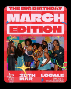 If you’re a March baby (or just love a good party), this one’s for you. The Big Birthday – March Edition is a celebration of all things fun, with music, drinks, and an atmosphere designed to make you feel special—whether it’s your birth month or not! This edition will be held on March 28 at Locale, 2 Saka Jojo Street, Victoria Island, Lagos.