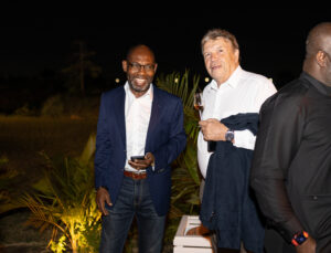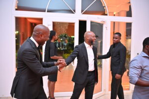 Jerry Adjorlolo (middle) interacting with guests.